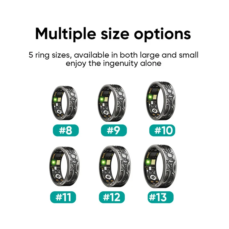 5.This intelligent ring offers various functions, monitoring your heart rate, blood oxygen, sleep patterns, and step count.